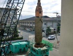 既存杭や地中構造物を地中で切断・撤去する工法です。切断時の騒音・振動はほとんど発生しません。